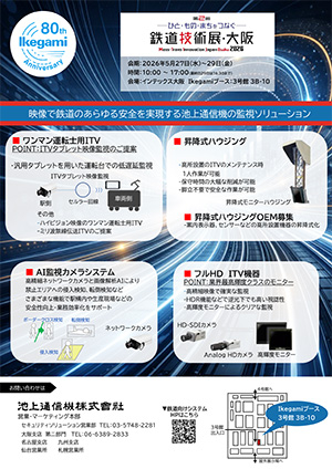 池上通信機株式会社は、2026年5月27日(水)から29日(金)まで、インテックス大阪で開催される「第2回鉄道技術展・大阪2026」に出展します。