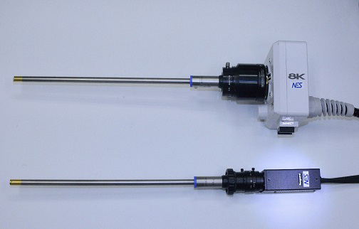 一方NESでは、平成28~30年度の3年間、国立研究開発法人日本医療研究開発機構(AMED)『8K等高精細映像データ利活用研究事業』の支援により、8Kスーパーハイビジョン技術(以下、8K技術)を用いた新しい硬性内視鏡手術システムの開発と高精細映像データの活用を検討する研究において、腹腔鏡用8Kカメラシステムを開発し、臨床試験を通してその有効性を検証しました。