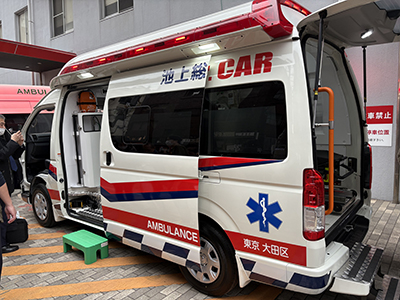 池上総合病院様は、東京都大田区にある地域密着型の二次救急医療機関として、『切れ目のない医療で地域の生活を支える社会を実現する』という理念のもと、幅広い医療サービスを地域に提供されております。多くの診療科を有し、急性期治療からその後の治療を行う回復期リハビリテーション病棟・地域包括ケア病棟・療養病棟を備え、幅広い医療ニーズに対応されています。2021 年からは、急性疾患に苦しむ患者さまを一刻も早く救命することを目的として、病院間搬送用の自家用救急車(ドクターカー)を運用されております。今回新たに導入されたドクターカーは、医療スタッフ間の円滑な情報共有を実現し、救急現場における迅速かつ的確な対応を可能にするものです。