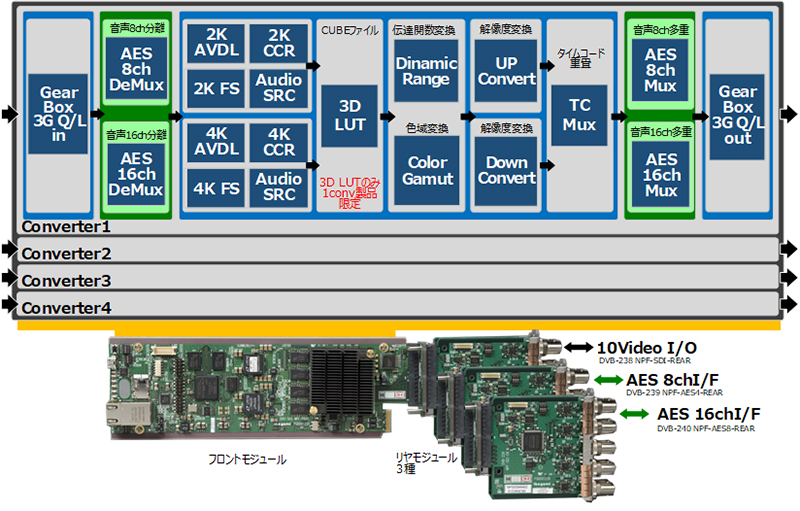 映像変換は4K⇔2K解像度、HDR⇔SDR伝達関数、BT.2020⇔709⾊域変換に対応