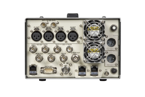 H.265/HEVCのコーデックを搭載。従来のH.264/AVCに対して約2倍の効率で映像符号化伝送を可能としています。オプションで4K伝送に対応し、4Kオプション選択時は12G-SDIの入出力インターフェースを装備。また、外部コーデックを用いたASI 入出力にも 対応しています。